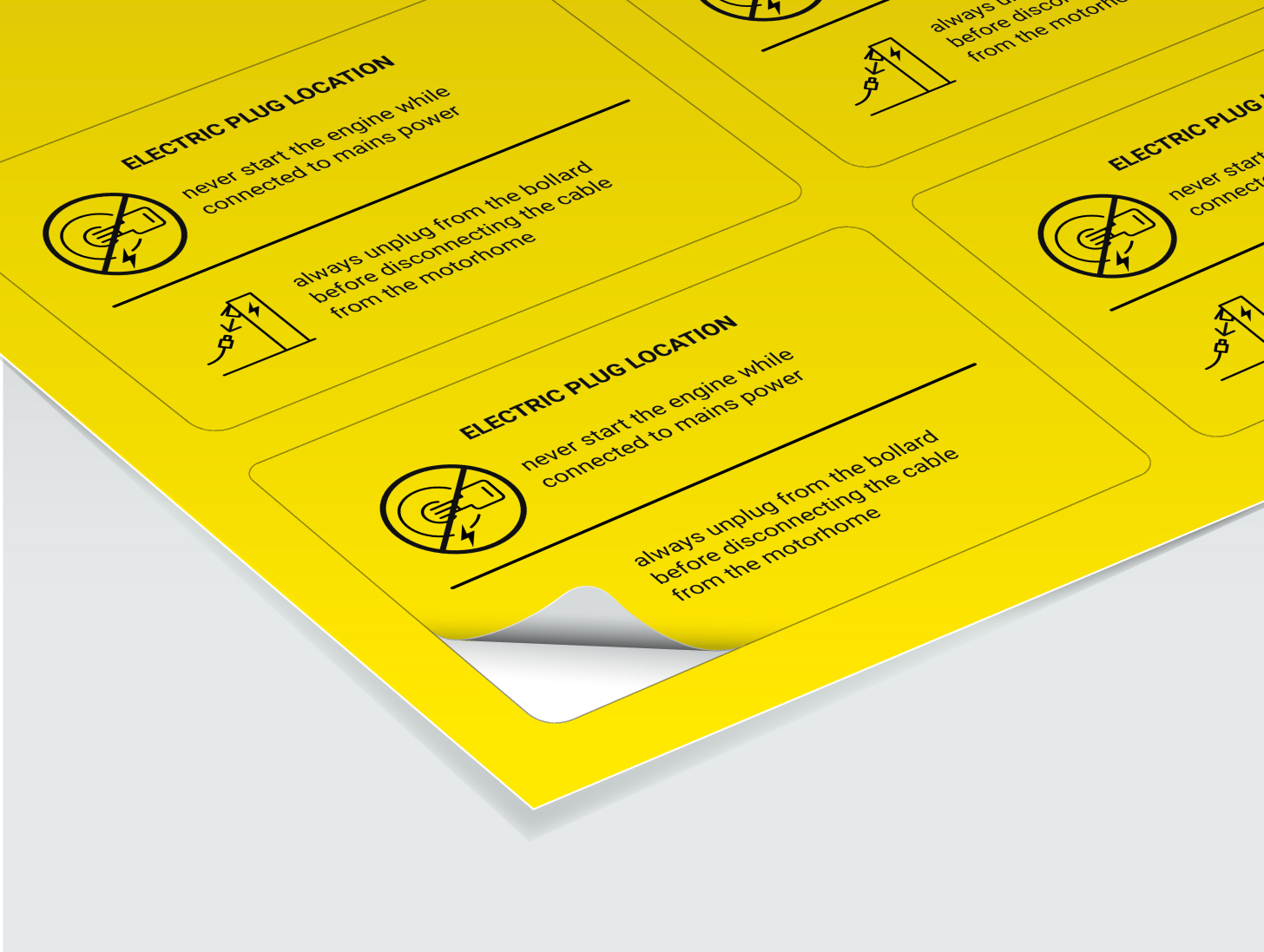 Printed on high-quality adhesive paper, hand-finished with UV protective spray to increase durability. Available in white, orange, yellow, blue, and transparent.